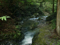 直射日光に当たらずいいかも! 登りの林道は終始日陰で沢沿いなので割りと